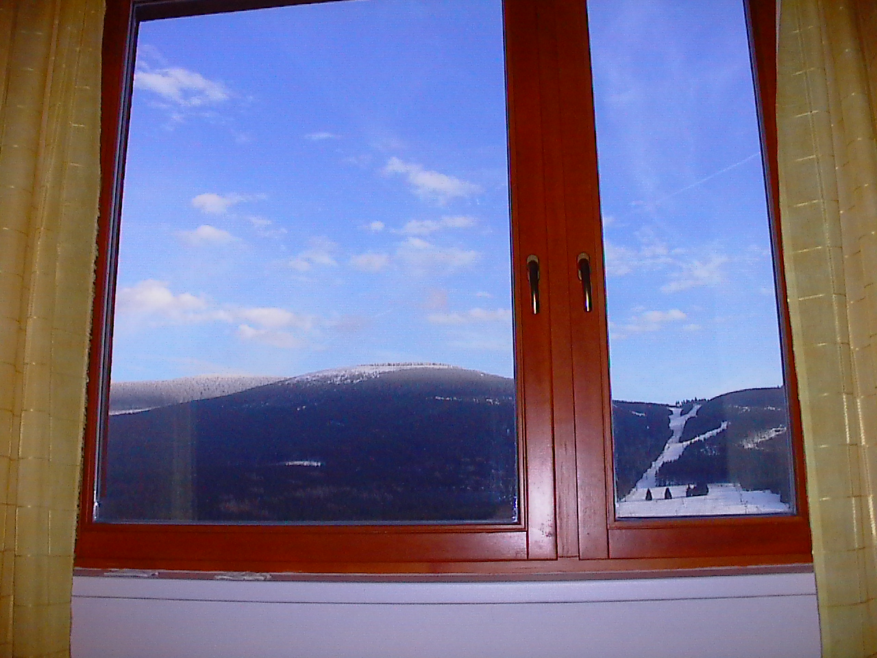 Kuchyňský kout s ledničkou, varným panelem a mikrovlnnou troubou, jídelní stůl se čtyřmi židlemi, Smart TV s úhlopříčkou 80 cm, DVD přehrávač, výhled z pokoje na horu Šerák a celý lyžařský areál Ramzová, sprchový kout a WC na pokoji, prostorná vestavěná šatní skříň, součástí bytu je i sklepní kóje v přízemí pro uložení lyží, kol, apod. a vyhrazené místo pro parkování před hotelem.